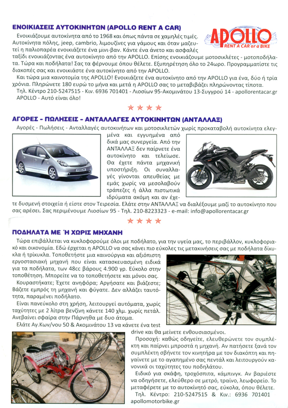 2η Διεύθυνση: Συγγρού 14, Αθήνα, τηλ: 21092424603η Διεύθυνση: Λιοσίων 95, Αθήνα, τηλ: 2108223323 customer tabsΕπικοινωνίαΕνοικιάσεις ΑυτοκινήτωνΕνοικιάσεις Μοτοσυκλετών και ΜοτοποδηλάτωνΥπηρεσίες Τουρισμού49ο χλμ Αττικής Οδού, Έξοδος Κ1, Πλησίον Αεροδρομίου, Σπάτα21020100666936701401info [at] apollorentacar.grwww.apollorentacar.gr Φωτογραφίες Facebook LikeGoogle Plus OneShare on FacebookTweet Widget